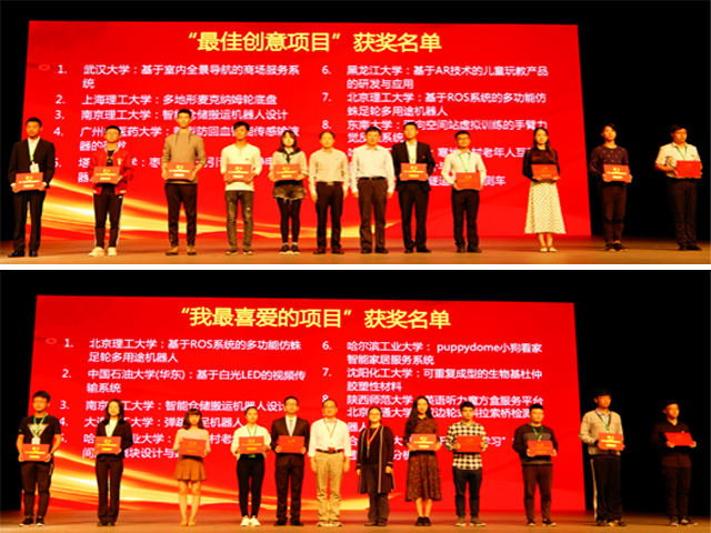 經(jīng)過層層評審,我校共有2個創(chuàng)新訓練項目和1篇學術論文從全國313所高校推薦的833個創(chuàng)新創(chuàng)業(yè)成果中脫穎而出,獲準參加現(xiàn)場展示,經(jīng)過專家現(xiàn)場評分和參賽選手互評等環(huán)節(jié)對255所高校的394個成果進行評價,經(jīng)過激烈角逐,最終我?!盎赗OS系統(tǒng)的仿蛛足輪多用途機器人”項目榮獲“最佳創(chuàng)意項目”和“我最喜愛的項目”兩項獎項,并在“我最喜愛的項目”評比中排名第一。