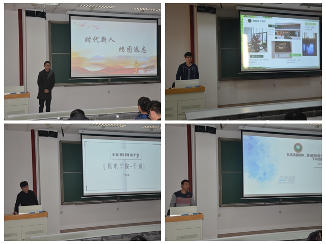 學(xué)院組織同學(xué)們參觀校史館。大家了解到學(xué)校輾轉(zhuǎn)辦學(xué)的艱辛與學(xué)校老領(lǐng)導(dǎo)的堅(jiān)持不懈,增強(qiáng)了自身的責(zé)任感與使命感,更加激發(fā)了同學(xué)們作為北理人、機(jī)電人的榮譽(yù)感。最后,各個干訓(xùn)小組對為期兩天的干訓(xùn)成果進(jìn)行了展示與答辯,分享了培訓(xùn)帶來的成長和收獲。