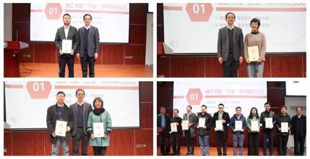 在“三全”導(dǎo)師聘任儀式上,與會(huì)人員先后為朋輩導(dǎo)師、學(xué)育導(dǎo)師、德育導(dǎo)師、學(xué)術(shù)導(dǎo)師、通識(shí)導(dǎo)師與校外導(dǎo)師六類導(dǎo)師頒發(fā)聘書。