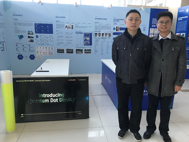講座結(jié)束后,由鐘海政教授陪同,段煉教授參觀了材料學(xué)院納米光子學(xué)實(shí)驗(yàn)室,了解了該實(shí)驗(yàn)室在量子點(diǎn)顯示技術(shù)方面的研究進(jìn)展,特別重點(diǎn)關(guān)注了該實(shí)驗(yàn)室鈣鈦礦量子點(diǎn)光學(xué)膜技術(shù)的產(chǎn)業(yè)化進(jìn)程,并給出了建設(shè)性意見(jiàn)。
