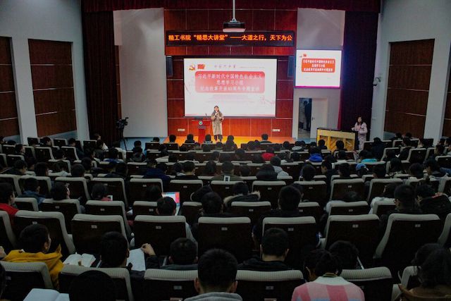日前,北理工習(xí)近平新時(shí)代中國(guó)特色社會(huì)主義思想學(xué)生學(xué)習(xí)宣傳小組(簡(jiǎn)稱“學(xué)習(xí)小組”)“慶祝改革開放40周年”主題形勢(shì)與政策宣講活動(dòng)圓滿完成。10名來自不同學(xué)院的學(xué)生黨支部書記、本科生、研究生以及輔導(dǎo)員走上講臺(tái),圍繞“慶祝改革開放四十周年”這一重大歷史事件,面向19個(gè)專業(yè)學(xué)院和9個(gè)書院的本科生累計(jì)開展23場(chǎng)形勢(shì)與政策宣講活動(dòng)。