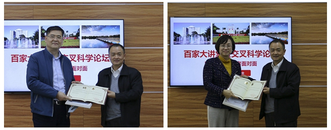梅宏向兩位院士頒發(fā)了“百家大講堂”報(bào)告嘉賓紀(jì)念證書和前沿交叉院戰(zhàn)略咨詢顧問委員會(huì)顧問專家聘書,并代表學(xué)校歡迎兩位院士的到來,感謝兩位院士在百忙之中為前沿交叉院的未來發(fā)展出謀劃策。他介紹了北京理工大學(xué)作為傳統(tǒng)工科院校在兵器與國防領(lǐng)域的優(yōu)勢,隨著大學(xué)體系的調(diào)整和國家“雙一流”建設(shè)的實(shí)施,當(dāng)前學(xué)校全面深化改革,齊心聚力積極向世界一流大學(xué)奮進(jìn)。他講到以前沿交叉科學(xué)研究為代表的新興學(xué)科的發(fā)展將成為未來一流大學(xué)建設(shè)的重要力量,前沿交叉院按照“學(xué)科方向孵化器”“優(yōu)秀人才蓄水池”的基本定位,圍繞物質(zhì)科學(xué)、生命科學(xué)、信息科學(xué)三大領(lǐng)域,超前布局交叉研究方向,匯聚培育具有國際競爭力的高端人才隊(duì)伍,開展交叉性、前沿性、基礎(chǔ)性、戰(zhàn)略性研究,培育新的學(xué)科方向增長點(diǎn),催生原始創(chuàng)新性成果,助推學(xué)校一流大學(xué)建設(shè)。他強(qiáng)調(diào)前沿交叉院建設(shè)要積極分析和借鑒兄弟高校的經(jīng)驗(yàn)和教訓(xùn),并結(jié)合學(xué)校的實(shí)際情況穩(wěn)步推進(jìn),同時(shí)希望兩位院士能在前沿交叉院的發(fā)展規(guī)劃、研究方向論證、優(yōu)秀人才引進(jìn)等方面給予指導(dǎo)與幫助。