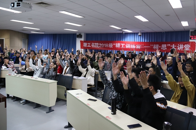 “剛入學的我,對于自己的專業(yè)不甚了解,對未來感到十分迷茫?!に肌笾v堂的老師們給我們介紹了許多專業(yè)知識,還鼓勵我們精于學術,勤于思考,讓我對自己專業(yè)的發(fā)展和應用有了新的認識,對自己的未來充滿了信心?!?“高中時老師常說到了大學就輕松了,原來大學才是需要我們真正沉下心去學習,去思考,去樹立堅定的理想信念,并為之不懈努力奮斗的時候?!本W子們紛紛分享自己這半年來在精工書院參加“精·思”大講堂的收獲。