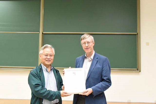會(huì)后,陳振慶教授代表北京理工大學(xué)為Higham教授頒發(fā)了北理工“百家大講堂”證書(shū),Higham教授也與師生們合照留念。