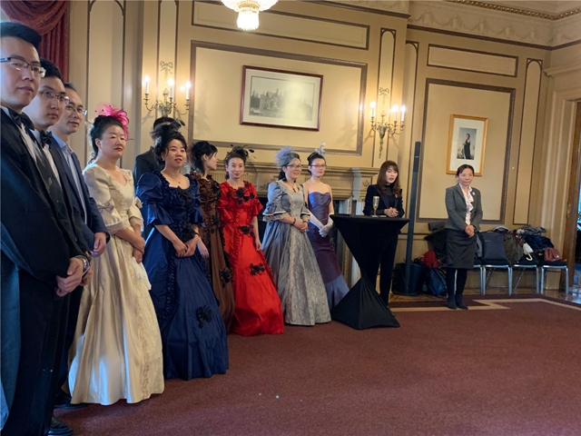 緊張而又快節(jié)奏的學(xué)習(xí)之后,大家終于可以放下身心的疲憊。在哈特里城堡內(nèi)舉行了隆重的畢業(yè)典禮,女士盤起頭發(fā)穿上復(fù)古歐式禮服,男士系上領(lǐng)結(jié)穿上黑色燕尾服,仿佛穿越回了中世紀(jì)。在專業(yè)舞蹈老師的指導(dǎo)下,大家一起隨著音樂翩翩起舞。