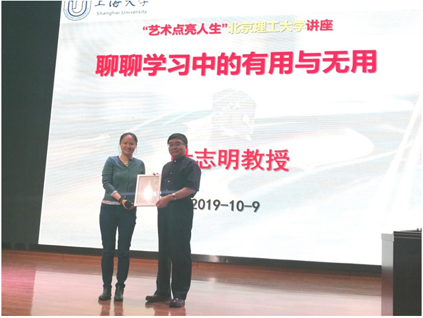 講座最后,人文學(xué)院副院長許欣為葉志明教授頒發(fā)北理工百家大講堂證書。葉志明贊嘆了北京理工大學(xué)在人才培養(yǎng)和素質(zhì)教育上的成效,感謝學(xué)校百家大講堂對他的邀請。
