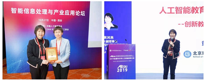高峰論壇期間還同期舉辦了“2019全國中小學(xué)人工智能教育大會”,大會匯集了來自全國的人工智能專家學(xué)者、教育專家、中小學(xué)校長、一線教師以及從事中小學(xué)人工智能教育的知名企業(yè)代表。與會現(xiàn)場嘉賓達(dá)300余人,同期觀看網(wǎng)易新聞直播的人數(shù)達(dá)90余萬。黃河燕教授應(yīng)邀作主旨報(bào)告《人工智能教育與創(chuàng)新思維培養(yǎng)》,就未來人工智能學(xué)科建設(shè)、人工智能教育及創(chuàng)新思維能力培養(yǎng)等方面,介紹了北京理工大學(xué)人工智能專業(yè)建設(shè)及新工科背景下創(chuàng)新人才培養(yǎng)的積極實(shí)踐與深入思考。 此外,2019年中國人工智能學(xué)會頒獎晚會在26日晚舉行,我院沈建冰教授指導(dǎo)的博士生王文冠在入圍的20篇博士論文中脫穎而出,獲得2019年中國人工智能學(xué)會優(yōu)秀博士論文獎。 圖3 王文冠博士榮獲2019年中國人工智能學(xué)會優(yōu)秀博士學(xué)位論文獎