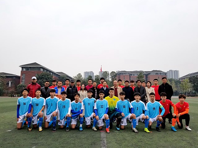 11月16日,招生宣傳工作組來到成都七中高新校區(qū),自動化學(xué)院黨委書記金軍代表我校向成都七中校領(lǐng)導(dǎo)贈送喜報和預(yù)警機(jī)模型,體育部直屬黨支部書記韓棋與中學(xué)足球隊主教練互贈隊旗,兩校足球隊隨后進(jìn)行友誼賽,以球交友、以球會友。