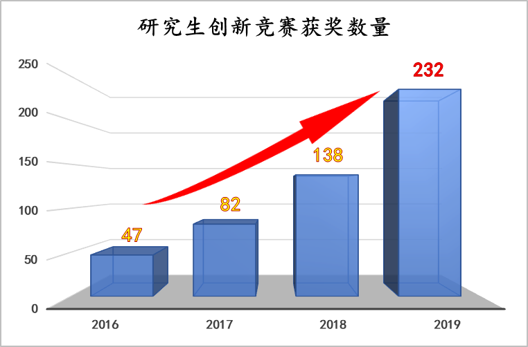 2019年,我校研究生參與各類科技創(chuàng)新活動(dòng)并獲省部級(jí)以上科技創(chuàng)新競(jìng)賽獎(jiǎng)232項(xiàng),創(chuàng)歷史新高。全年研究生參與科技創(chuàng)新競(jìng)賽活動(dòng)超過3000人次,一年級(jí)研究生參與科技創(chuàng)新的人數(shù)占比超過40%。