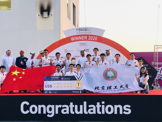 北京時間2020年2月25日晚,北京理工大學“飛鷹”隊在阿聯(lián)酋阿布扎比舉辦的穆罕默德?本?扎耶德國際挑戰(zhàn)賽(MBZIRC2020)上,奪得冠軍。
