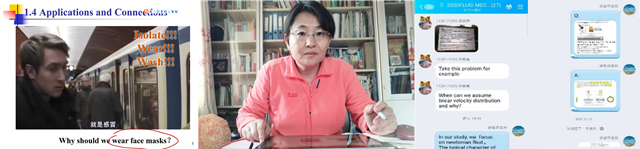 “Why should we wear face mask?“,這是2月26日《Fluid Mechanics》云課堂上張敏弟老師為了引入流體力學課程向同學們提出的一個問題,課程的第一講正是在觀看口罩防護原理的視頻中開始了。“上課前還對網(wǎng)絡教學的效果心存忐忑,實際上卻發(fā)現(xiàn)同學們似乎早已適應了這種學習模式,有的同學上午10:19就簽到開始學習課程了,完成學習后同學們對限時的課堂測試都進行了作答?!睆埫舻芾蠋熍d奮地感慨道。這樣的網(wǎng)絡上課效果離不開老師背后充分的準備,張敏弟老師在開課前就在樂學平臺首頁列出了前兩周的課程PPT和講解視頻文件,讓學生在上課前就大致了解課程內(nèi)容。同時在直播方面,張敏弟老師也是早有準備,早在2016年其課程組就基于中文流體力學課程共同錄制慕課,于2018年還被評為國家級精品在線開放課程,這才積累了充分的在線講授經(jīng)驗,才得以從容開啟這堂網(wǎng)絡教學直播課。
