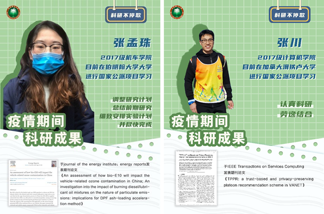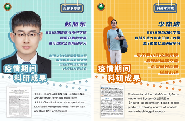 保障科研學習成效。同學們在做好自我防護的同時,不忘海外留學的初心,積極開展科研工作,及時調(diào)整學習計劃,合理利用學校提供的在線數(shù)據(jù)庫資源,采用網(wǎng)上學習、線上視頻、遠程會議等形式與國內(nèi)外導師進行學術探討。通過刻苦鉆研,部分同學在疫情期間還取得了較為突出的研究成果。據(jù)統(tǒng)計,我校海外研究生疫情期間已累計在頂級或重要期刊上投稿70余篇,正式發(fā)表學術論文20余篇。
