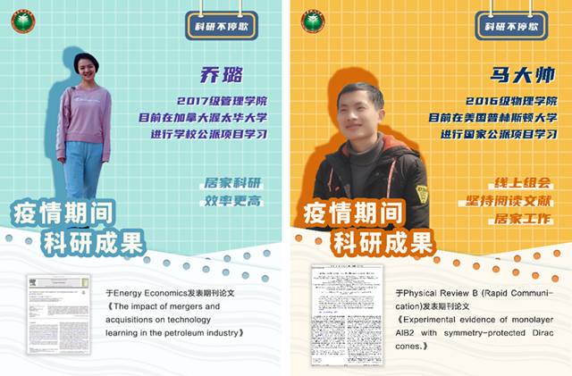 喬璐:“作為文科專業(yè),不需要實驗設備,疫情期間居家科研在我看來效率更高。同時,疫情期間,導師每周依然通過網(wǎng)上會議的形式指導我們工作,訪問學校的課程和研討會也可以在網(wǎng)上參加,對取得科研成果十分有利?!?/p>