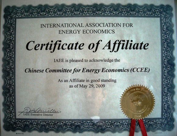 IAEE中國大陸分支機(jī)構(gòu)證書