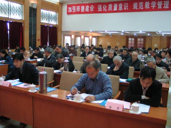 本次會(huì)議的中心議題是:加強(qiáng)師德建設(shè),強(qiáng)化質(zhì)量意識(shí),規(guī)范教育管理,建設(shè)教學(xué)體系,提高教學(xué)水平。