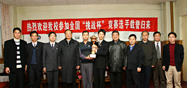 匡校長和焦書記分別對參賽歸來的選手及帶隊教師們致以了親切的慰問,匡校長講到:“挑戰(zhàn)杯”作為一項大學生的課外科技學術競賽,其“崇尚科學、追求真知、勤奮學習、銳意創(chuàng)新、迎接挑戰(zhàn)”宗旨與黨中央所提出的提高大學生創(chuàng)新、實踐能力的總方針是十分符合的,參與舉辦這類的學生科技活動對提高理工大學的學術影響力、把我校建設成為“國內(nèi)一流,世界知名”的高水平研究型大學是十分有幫助的,在今后的工作當中,學校各部門應當把組織學生積極參與各類學科競賽,認真辦好學生課外科技創(chuàng)新當作一件大事來抓,在學校內(nèi)營造良好氛圍。在談到學生課外科技創(chuàng)新的重要性時,校黨委書記焦文俊講到:本科生的課外科技創(chuàng)新活動是培養(yǎng)高水平創(chuàng)新性人才的肥沃土壤,對于本科生的課外科技創(chuàng)新的研究成果,應當在學校相關政策的支持之下保留下來,在學生碩士博士研究生階段可以對這些成果予以進一步的發(fā)展擴大,在現(xiàn)有基礎上做大做深;對于在課外科技活動當中有突出表現(xiàn)的學生,應當在政策上進行照顧,使他們的特長進一步的深造當中可以得到更好的發(fā)揮。信息學院“光電創(chuàng)新教育基地”、機電工程學院的航模隊,作為學生課外科技學術活動的基地,為活躍學生課外科技創(chuàng)新,提高全校的課外科技學術活動水平做出了重要的貢獻,在這次“挑戰(zhàn)杯”競賽的六件參賽作品當中,有一半作品是出自這兩個基地,由此可見學生課外科技學術活動的基地的重要地位。因此各學院應當發(fā)揮自身的學科優(yōu)勢,在學校當中建立一批這樣的學生課外科技學術活動基地,帶動學校的科技創(chuàng)新風氣,培養(yǎng)學生的創(chuàng)新精神與意識,本科生的課外科技要與研究生院博士生培養(yǎng)中“育苗工程”聯(lián)系起來。副校長趙長祿和副校長孫逢春也分別就我校開展學生課外科技活動提出了相關意見和建議,并表示要大力支持此項工作。