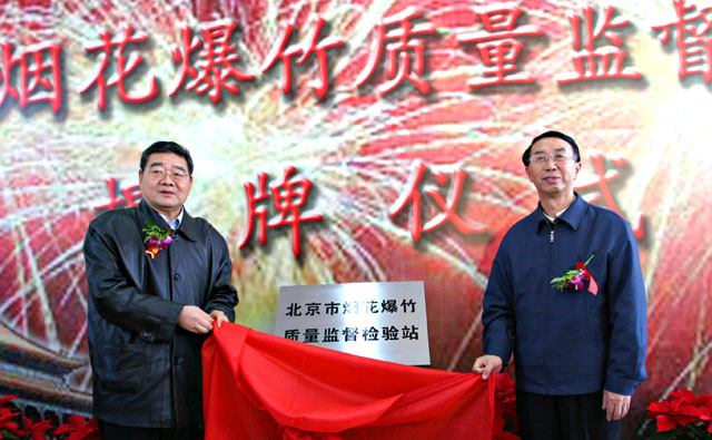 校黨委書記焦文俊和市質監(jiān)局負責人為北京市煙花爆竹質量監(jiān)督檢驗站揭牌。