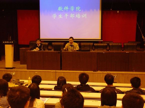 軟件學(xué)院在加強(qiáng)學(xué)風(fēng)建設(shè)的系列工作中,充分發(fā)動(dòng)學(xué)生骨干的力量,以學(xué)生社團(tuán)為載體,各項(xiàng)學(xué)生活動(dòng)圍繞學(xué)風(fēng)建設(shè)這一重點(diǎn)。2006年10月24 日下午,軟件學(xué)院全體學(xué)生干部在七號(hào)樓報(bào)告廳參加了學(xué)生干部培訓(xùn)大會(huì)。學(xué)院副書記、副院長(zhǎng)陳旵明老師就“學(xué)生骨干在學(xué)風(fēng)建設(shè)中如何發(fā)揮重要作用”給學(xué)生干部進(jìn)行了培訓(xùn)。學(xué)院分團(tuán)委老師也出席了大會(huì)。