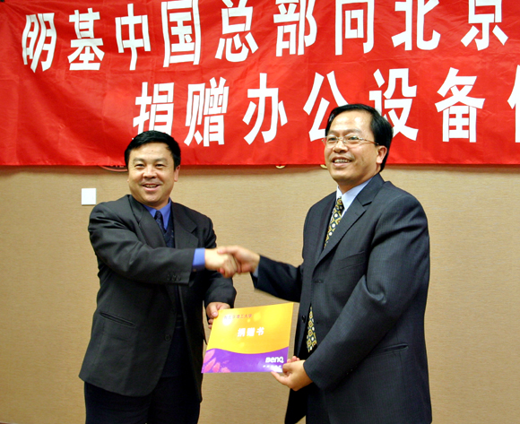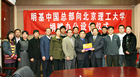 儀式首先由明基中國(guó)總部副總經(jīng)理江明洲先生介紹了一下本次捐贈(zèng)的初衷和公司的概況。江明洲講到這次能把公司的部分辦公家具和設(shè)備捐贈(zèng)給北京理工大學(xué),為高校教育做點(diǎn)事情,盡點(diǎn)綿薄之力,是明基公司的一件幸事。公司一貫是以傳達(dá)真善美、關(guān)懷社會(huì)、培養(yǎng)人才為企業(yè)的宗旨和理念,公司一直希望與高校所交流、多學(xué)習(xí)共悟培養(yǎng)人才之道校,希望北京理工大學(xué)越辦越好,為社會(huì)培養(yǎng)更多的英才。隨后校團(tuán)委書記張啟鴻老師宣讀明基公司捐贈(zèng)辦公設(shè)備的清單。這次明基中國(guó)總部向我校共捐贈(zèng)電腦20套、柜子126件、桌子326件、椅子255件。