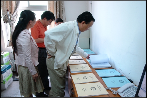 匯報結(jié)束后,匡鏡明校長一行在學(xué)院領(lǐng)導(dǎo)的陪同下檢查了學(xué)院評估辦公室、圖書資料室和部分實驗室。