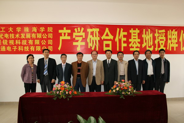 2007年11月2日上午,珠海學(xué)院舉行了與珠海銀郵光電技術(shù)發(fā)展股份有限公司、珠海安聯(lián)銳視科技有限公司、珠海市均通電子科技有限公司三家企業(yè)的產(chǎn)學(xué)研合作基地授牌儀式。