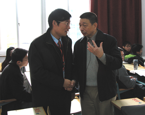 專家組成員、南京理工大學(xué)教務(wù)處處長、教授、博士生導(dǎo)師袁軍堂聽取韓伯棠教授和榮輝副教授講授的課程后分別與兩位教師親切交談。隨后前往體育部觀摩了體育課,并就體育教學(xué)有關(guān)問題與部分教師進(jìn)行了座談和交流,他還重點(diǎn)聽取了我校足球隊的建設(shè)情況。