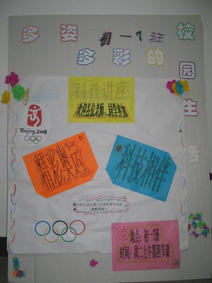 2007年11月27日,宇航科學技術學院科普宣講團來到北京大學附屬中學,給該校多位老師及初一七班的同學做了一場名為“科技奧運”的科普講座。
