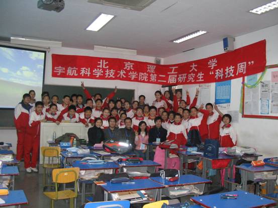 此次活動作為宇航學院第二屆研究生“科技周”科技社會行的一部分,在北京大學附屬中學引起了極大的反響,受到了該校校長和諸多老師以及同學們的歡迎。
