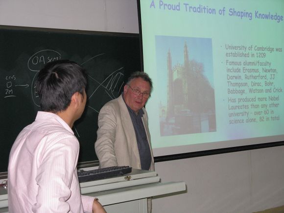2008年5月14日英國(guó)劍橋大學(xué)工程系電子工程分部先進(jìn)光子和電子學(xué)研究中心(CAPE)主席William A Crossland教授訪問(wèn)信息學(xué)院并做精彩學(xué)術(shù)報(bào)告。