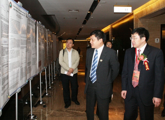 大會(huì)開(kāi)始前鄧玉林院長(zhǎng)陪同胡海巖校長(zhǎng)瀏覽會(huì)議論文Poster展覽。