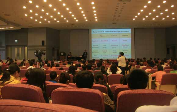 本次會議恰值中國分子光譜會議走過三十年的歷程。來自國內(nèi)三十多家高校和科研單位的300多位代表參加了會議。這是我國在分子光譜學(xué)術(shù)領(lǐng)域?qū)哟巫罡?、學(xué)術(shù)信息容量最大、參加人數(shù)最多的一次盛會。田中群院士、李燦院士、張希院士參加了本次會議。參加會議的還有一大批中國光譜學(xué)界的老專家、國外專家和國內(nèi)知名專家學(xué)者。我校作為承辦單位之一,承擔(dān)了會議的籌備工作。