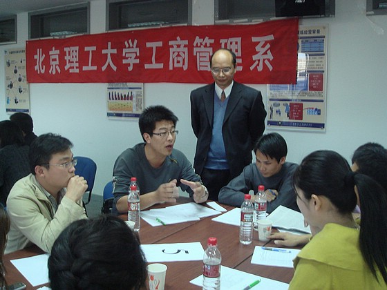 2008年10月25日下午,由中國管理科學(xué)學(xué)會企業(yè)管理專業(yè)委員會,中國房地產(chǎn)經(jīng)理人聯(lián)盟主辦,北京理工大學(xué)工商管理系承辦的“體驗(yàn)中學(xué)習(xí)管理真諦”活動在北京理工大學(xué)國際教育交流大廈七層拉開帷幕。北京理工大學(xué)管理與經(jīng)濟(jì)學(xué)院工商管理系主任周畢文博士作為此次管理游戲活動的總教練,帶領(lǐng)與會的房地產(chǎn)界經(jīng)理和媒體朋友們在游戲中領(lǐng)悟管理的真諦,幽默的語言、發(fā)人深思的點(diǎn)評,不時引來陣陣掌聲和歡笑聲。
