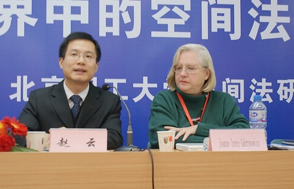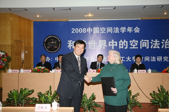 2008年12月20日,在2008中國(guó)空間法學(xué)年會(huì)暨“和諧世界中的空間法治”學(xué)術(shù)研討會(huì)的開(kāi)幕式上,美國(guó)密西西比大學(xué)法學(xué)院教授,國(guó)家遙感、航空與航天法中心主任Joanne Irene Gabrynowicz博士受聘為我校兼職教授,北京理工大學(xué)黨委副書(shū)記、工會(huì)主席侯光明教授主持了聘任儀式,并向Joanne Irene Gabrynowicz博士頒發(fā)了兼職教授聘書(shū)和佩戴了北京理工大學(xué)?;?。北京理工大學(xué)法學(xué)院教授、北京理工大學(xué)空間法研究所所長(zhǎng)李壽平博士介紹了Joanne Irene Gabrynowicz博士的簡(jiǎn)歷和學(xué)術(shù)成就。