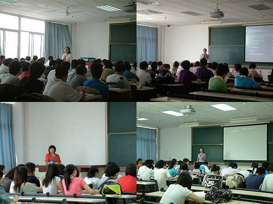 大學(xué)英語是本科生的一門基礎(chǔ)必修課,包括《大學(xué)英語讀寫譯》課程、《大學(xué)英語視聽說》課程和《專項英語(十余類,近30門)》 課程。自2007年9月以來,大學(xué)英語教學(xué)部40余名教師,承擔(dān)著良鄉(xiāng)校區(qū)大一、大二兩個年級非英語專業(yè)6000多名本科生的英語教學(xué)任務(wù)。每位教師都同時承擔(dān)2-3門課程,每周授課學(xué)時達(dá)10-12學(xué)時。教師們家居北京地區(qū)四面八方,教學(xué)任務(wù)繁重,往返上課非常辛苦。但每位教師為了教學(xué),克服許多困難, 認(rèn)真為學(xué)生上好每一堂課,07級、08級學(xué)生大學(xué)英語國家四級通過率分別為91.47%和91.13%,這些成績的取得與每位教師默默無私的付出是分不開的。