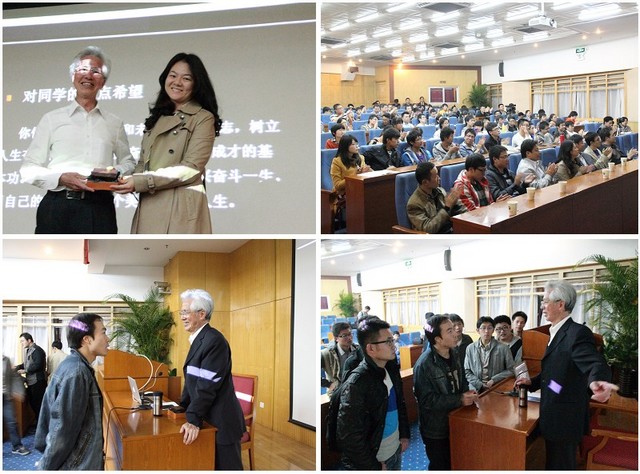 2013年10月28日晚,以“用智慧和汗水書寫美好人生”為主題的院士報告會在我校中關(guān)村校區(qū)舉行。作為“信仰•青春•陽光”主題教育活動的重要環(huán)節(jié),在校團委、機械與車輛學(xué)院共同組織下,被稱為“中國館之父”的中國工程院院士何鏡堂來到我校與學(xué)生面對面。校黨委副書記、副校長李和章,校團委副書記方蕾,機械與車輛學(xué)院黨委副書記、副院長范文輝等領(lǐng)導(dǎo)老師參與了此次活動。