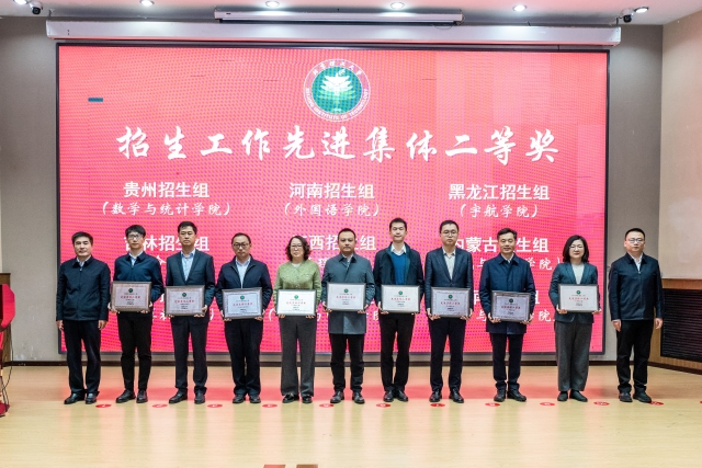 黨委副書記包麗穎,黨委常委、副校長(zhǎng)魏一鳴為2024年招生工作特別貢獻(xiàn)獎(jiǎng)獲獎(jiǎng)代表頒獎(jiǎng)