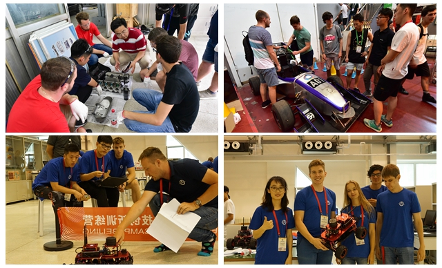 “科技創(chuàng)新訓練”課程環(huán)節(jié)由機械與車輛學院地面機動裝備國家級實驗示范教學中心承辦。中心教師劉波瀾、譚建偉等為學生安排了為期三天的發(fā)動機拆裝、變速器拆裝實踐實習。李忠新、何永熹、呂唯唯等實踐教學一線教師為此次活動精心設計了三天的智能車自主導航競技實踐活動,活動內容包含智能車系統(tǒng)搭建、控制程序調試、傳感器應用、SLAM地圖構建、自主導航競技等環(huán)節(jié);中外學生根據給定條件與要求,通過分組討論自主完成智能車的運動設計與實現,并以競賽的形式開展路徑規(guī)劃、循跡、避障等功能展示。中外學生在實踐環(huán)節(jié)互動交流氣氛熱烈,不同國家大學生的科技創(chuàng)新思維在此進一步碰撞和交融。