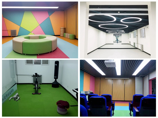 本學(xué)期伊始,求是書(shū)院900㎡文化活動(dòng)空間正式建成,設(shè)有黨建工作室、學(xué)術(shù)研討室、沙龍分享室、影音放映室、壓力釋放室、文體藝術(shù)室等功能空間,可為書(shū)院知行講堂、學(xué)業(yè)研討、創(chuàng)客沙龍、課程串講、集體觀(guān)影、班團(tuán)例會(huì)、心理減壓、舞蹈塑形等活動(dòng)開(kāi)展提供保障。