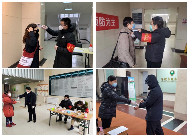 第一責(zé)任,黨員干部守土擔(dān)責(zé)。在校園樓宇值守工作中,各單位黨政領(lǐng)導(dǎo)干部充分體現(xiàn)出靠前指揮、強化擔(dān)當(dāng),沖在一線,為師生員工做好守土有責(zé)、守土擔(dān)責(zé)、守土盡責(zé)的表率。2月13日一早,機電學(xué)院院長陳鵬萬、黨委書記王亞斌就帶領(lǐng)值守人員到崗,落實不缺崗、不斷崗、不遲到、不早退的工作要求。信息與電子學(xué)院院長安建平、黨委書記薛正輝也分別早早來到學(xué)院牽頭負(fù)責(zé)的10號教學(xué)樓、4號教學(xué)樓入口參與值守工作,為出入師生進行體溫監(jiān)測和信息登記。機械與車輛學(xué)院制造工程系黨總支書記王國新8點準(zhǔn)時到崗,與同事一起對進出1號教學(xué)樓的師生員工查驗證件、測量體溫,學(xué)院黨委書記馮慧華巡查學(xué)院值守崗位,確保工作方案落實到位。