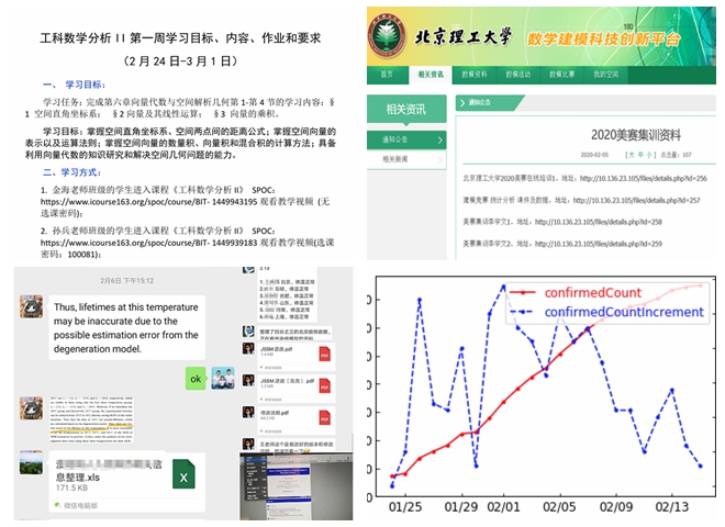 疫情期間,教師們學(xué)術(shù)研究不停歇,堅(jiān)持做好學(xué)生科研學(xué)習(xí)指導(dǎo)工作。在2020年國(guó)家自然科學(xué)基金項(xiàng)目的申報(bào)工作中,已有25個(gè)項(xiàng)目提交了申請(qǐng)意向,數(shù)量相比去年有所增加,還有許多教師正在積極籌備中;數(shù)學(xué)建?;丶皶r(shí)調(diào)整美國(guó)大學(xué)生數(shù)學(xué)建模競(jìng)賽的集訓(xùn)形式,通過(guò)QQ群和科創(chuàng)平臺(tái)發(fā)布培訓(xùn)資料供學(xué)生下載學(xué)習(xí); 多個(gè)學(xué)術(shù)討論班改成線上方式,導(dǎo)師在提醒學(xué)生注重疫情防護(hù)的同時(shí),開(kāi)展日??蒲兄笇?dǎo)工作;統(tǒng)計(jì)學(xué)系導(dǎo)師王典朋在線指導(dǎo)學(xué)生在畢業(yè)設(shè)計(jì)中利用數(shù)學(xué)模型研究疫情發(fā)展規(guī)律,啟發(fā)學(xué)生運(yùn)用理論知識(shí)解決實(shí)際問(wèn)題的能力。