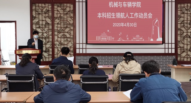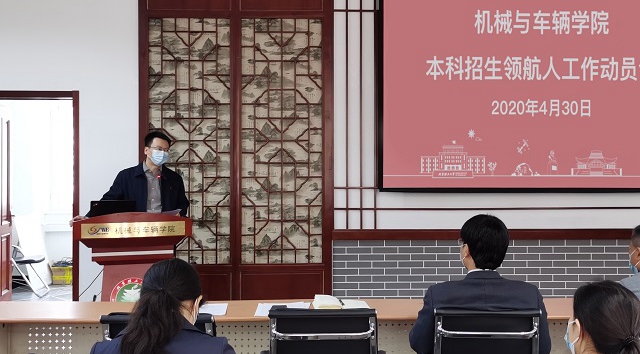 為進(jìn)一步貫徹落實(shí)學(xué)校本科招生工作會(huì)議精神,全面推進(jìn)疫情防控新形勢(shì)下內(nèi)蒙、湖南兩地招生宣傳工作高效有序開(kāi)展,4月30日,機(jī)械與車輛學(xué)院召開(kāi)了2020年本科招生工作動(dòng)員會(huì)。教務(wù)部副部長(zhǎng)范文輝,學(xué)院院長(zhǎng)姜瀾、黨委書(shū)記馮慧華、副院長(zhǎng)黃彪出席會(huì)議,學(xué)院招生工作組三十余位領(lǐng)航人到場(chǎng)參會(huì)。會(huì)議由學(xué)院黨委副書(shū)記、副院長(zhǎng)孫碩主持。
