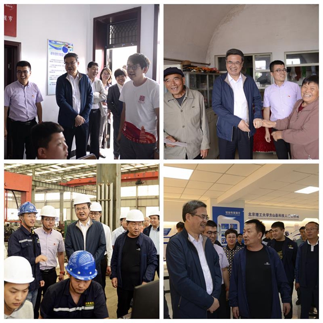 隨后,張軍一行前往麻地會(huì)鄉(xiāng)胡堡村聽取我校駐村第一書記吳克友對(duì)胡堡村基本情況和扶貧工作開展情況的匯報(bào),看望了在村開展社會(huì)實(shí)踐的我校學(xué)生,走訪慰問了當(dāng)?shù)乩щy群眾,實(shí)地考察了包聯(lián)企業(yè)龐泉重機(jī)發(fā)展情況和北理工方山科技人才工作站運(yùn)轉(zhuǎn)情況,聽取駐站專家團(tuán)隊(duì)就礦山機(jī)械控制、氧化鋁加工等項(xiàng)目進(jìn)展情況匯報(bào)。張軍對(duì)駐站專家在疫情防控進(jìn)入常態(tài)化后立即重啟駐站工作,全身心投入科技扶貧表示贊許,并對(duì)工作站一年來取得的各項(xiàng)成績(jī)給予充分肯定。