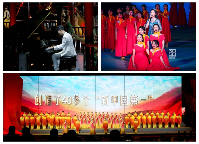 伴隨著柔和的燈光、動(dòng)情的旋律,序幕“延安根”開啟。一曲《我愛你中國》唱出了同學(xué)們的赤子心聲,水榭里、石橋上、舞臺(tái)中,來自學(xué)校各個(gè)學(xué)院的師生們用飽含深情的話語為母校獻(xiàn)上由衷的祝福。情景故事《夢回延安》將觀眾帶到80年前的延安,上百名演員通過講述、歌唱和形體表演等形式再現(xiàn)自然科學(xué)院創(chuàng)建及校址遷移時(shí)期的場景。