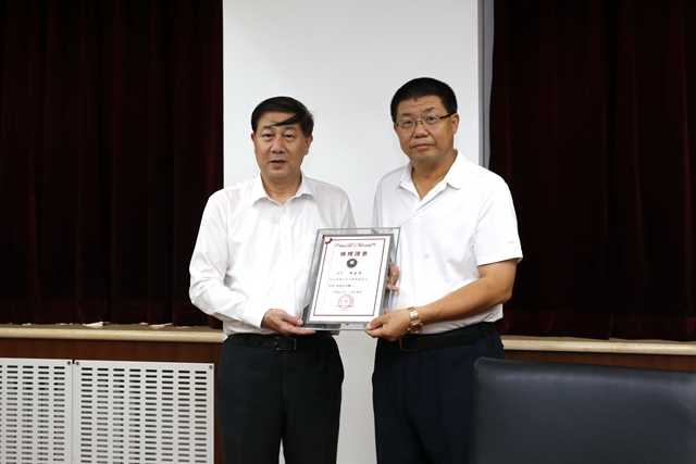 項(xiàng)昌樂代表學(xué)校向費(fèi)振勇校友頒發(fā)捐贈(zèng)證書、贈(zèng)送紀(jì)念品。