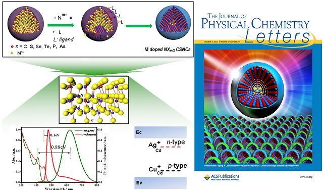 2017年8月,一篇題為《膠體納米晶的異價(jià)摻雜:陽離子交換提供摻雜發(fā)光和摻雜能級(jí)調(diào)控新途徑》( “Heterovalent doping in Colloidal Semiconductor Nanocrystals: Cation Exchange-Enabled New Accesses to Tuning Dopant Luminescence and Electronic Impurities”)的論文,以封面文章的形式,在國(guó)際知名物理化學(xué)學(xué)術(shù)期刊《美國(guó)物理化學(xué)快報(bào)(Journal of Physical Chemistry Letters)》發(fā)表,并受邀以視頻形式在美國(guó)化學(xué)會(huì)網(wǎng)站進(jìn)行專題報(bào)道。